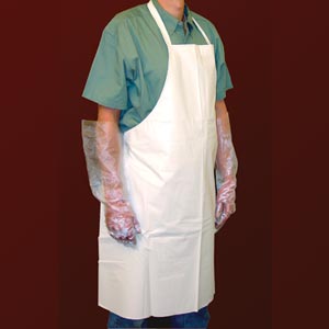 Made of popular 50/50 white cotton polyester. Each apron has 36" nylon ties, 37"W x 36" L