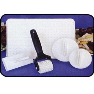 Back and forth rolling motion tenderizes meats faster. Tender Board's 250+ probes hold meat in place while tenderizing. The tender tool set comes with 7 3/4" x 11 3/4" Tender Board, Tender Tool (tenderizing roller), large and small burger presses and stick/breakfast link press.