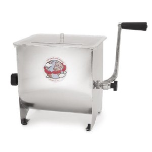 Easily combine premixed seasonings to your meat while you monitor the mixing process through the clear plastic lid with this 20 lb. meat mixer. Minimum capacity 10 Lbs.