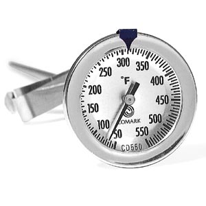 Dishwasher safe, clip included, adjustable temperature indicator, 2" dial face, 12" stem.