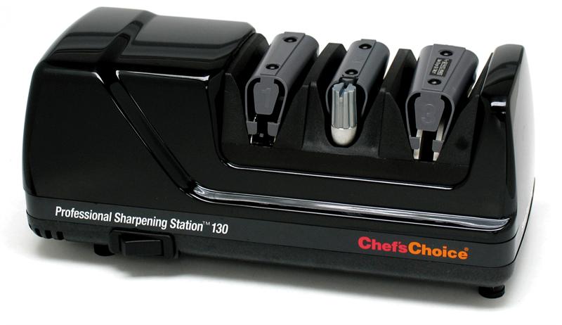 The Chef's Choice Professional Sharpening Station 130 is all you need to satisfy your sharpening needs in a high-performance package. Designed for serious cookers and professional chefs, the M130 carefully sharpens steels, or strops and almost any type of kitchen knives in every style such as straight edge, Asian style, sports or pocket knives quickly with great sharpness and perfection. The Chef's Choice Professional Sharpening Station is equipped with an innovative sharpening technology developed by Edgecraft, for better edges and serrated knives. The Chef's Choice Sharpener works in three stages for accurate sharpening.