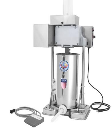 This 30 Lb. Sausage Stuffer is a high-performing sausage stuffer machine for commercial use. Designed with a foot-operated motor, it develops 150 pounds per foot of torque. The convenient foot switch lets you control how fast you want to go and leaves both your hands free to keep up with this amazing output. The motorized adaptor is equipped with an automatic raise switch for the piston as well as an override up/down switch in case the foot petal breaks. The adaptor also has a new, easy to read label and buttons making it very intuitive and simple to use. The design of this sausage stuffer machine also provides you with more accurate limit constraints.